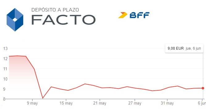 06 de junio del 2024 Las acciones de BFF, conocido en España por Facto o Cuenta Facto, ha perdido un 25% de su valor de hace 1 mes; Desde los 12€, hasta los 9€ de ahora. ¿Qué ha pasado? ¿Hay riesgos de algún tipo?