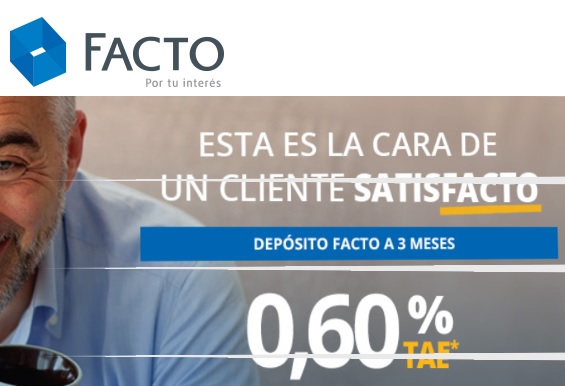 24 de noviembre del 2020 Facto ha ofrecido durante el 2020 uno de los depósitos más rentables del mercado, llegando hasta el 1,25% TAE, pero en el mes de noviembre, la cosa cambió, ahora máximo, 0,6% TAE y sólo para plazos de hasta 179 días.