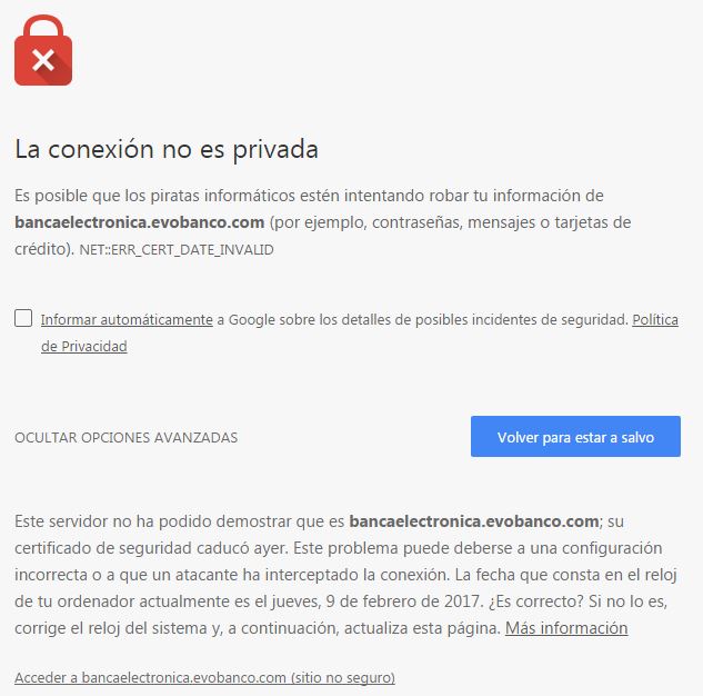 01 de marzo del 2017 El pasado mes de febrero, la banca electrónica de Evo Banco advertía que su web no era segura, debido a que se le había caducado el «certificado de seguridad», este mes le toca al Banco Popular-e.