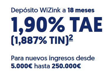 30 de septiembre del 2025 Wizink ofrece ahora sus 4 depósitos al 1,9% TAE y la cuenta al 1,2% TAE. Muy bajo y creemos que pronto tendrá que seguir la tendencia de los otros bancos que en las últimas semanas han aumentado la rentabilidad de sus productos.
