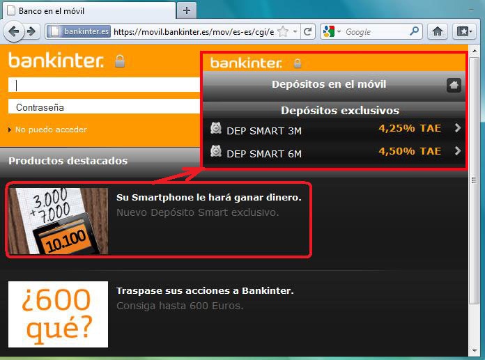 Para contratar este producto se requiere tener un Tablet o un SmartPhone, ya que tan sólo accediendo con estos dispositivos a portal móvil de bankinter nos muestra la oferta.