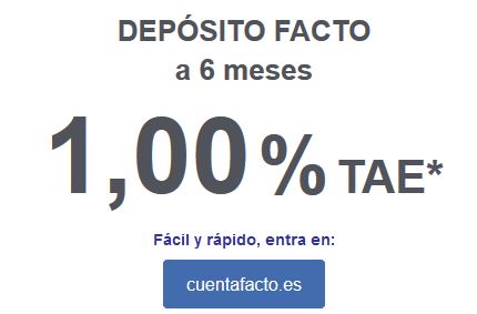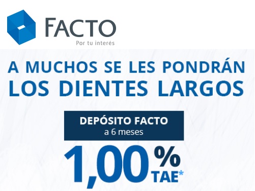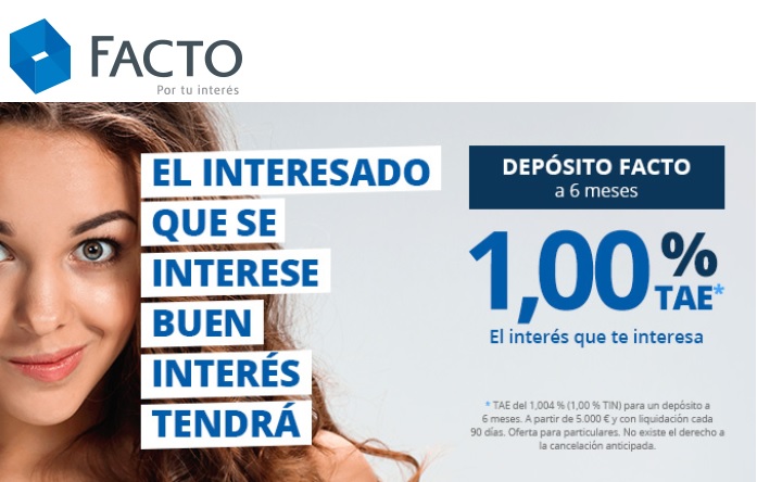 Facto sube de forma extraordinaria su depósito a 6 meses de plazo hasta el 1% TAE (antes 0,6% TAE), siendo el depósito más rentable a este plazo.