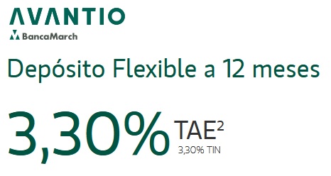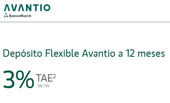 Banca March relanza el depósito Flexible Avantio a 12 meses de plazo y ahora al 3% TAE para nuevos clientes digitales.