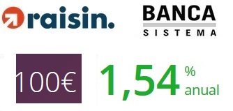 Banca Sistema, cuyos depósitos se puede contratar a través de la plataforma Raisin, vuelve a subir la rentabilidad de sus depósitos, esta vez, el de 2 años de plazo hasta el 1,44% TAE.