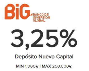 Banco BIG mantiene sin cambios sus depósitos desde hace 2 meses, con una rentabilidad máxima del 3,25% TAE, que resulta cada vez más interesante.