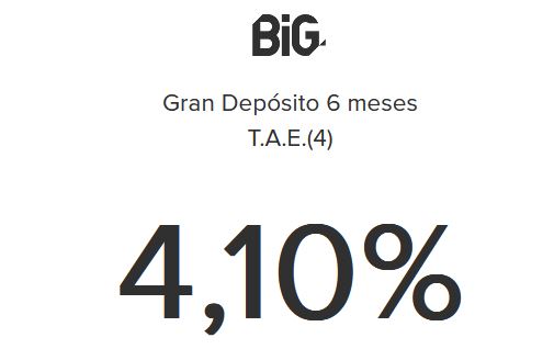 Banco BIG lanza un «Gran Depósito» a 3 meses de plazo y al 4% TAE, siendo el más rentable actualmente.