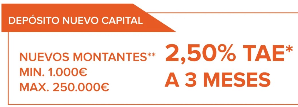 El depósito Nuevo Capital, para dinero nuevo, sigue sin cambios al 3,25% TAE y a 6 meses de plazo,