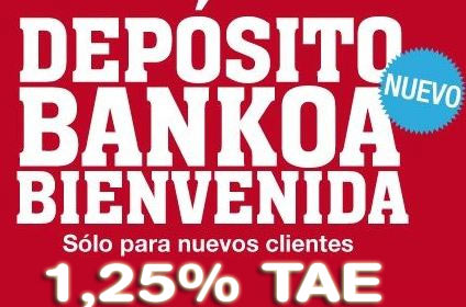 Bankoa ofrece a los nuevos clientes un depósito de bienvenida al 1,25% TAE y a 4 meses de plazo.