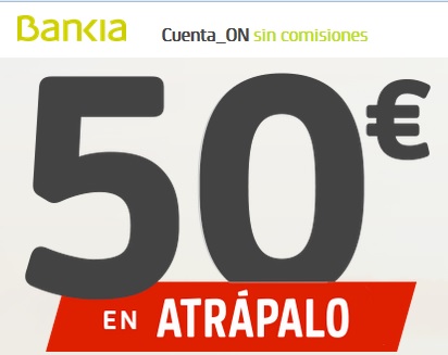 Bankia ofrece 50€ para gastarlo en atrapalo.com, el portal de viajes, por abrir una Cuenta On sin comisiones de mantenimiento y administración durante en lo que queda del mes de septiembre.