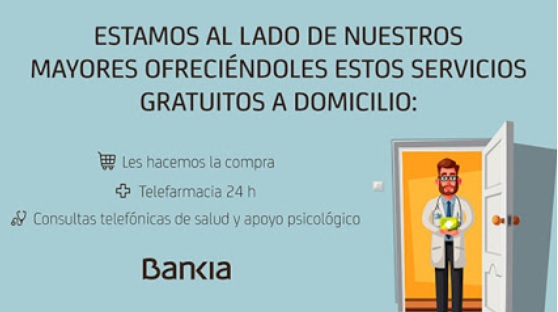 Bankia ha lanzado 2 servicios gratuitos dirigidos a sus clientes pensionistas, mayores de 65 años con el fin de evitarles que tengan que salir de sus hogares y exponerse al coronavirus.