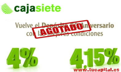 Caja Siete pone el cartel de agotado su depósito 50 aniversario al 4,15% TAE