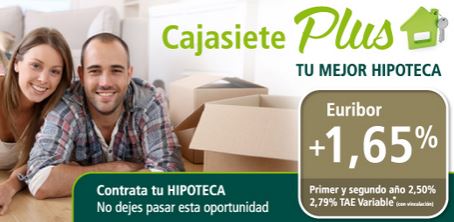 CajaSiete baja el tipo de interés de su hipoteca Plus hasta el Euribor + 1,65% TAE, un 0,1 puntos porcentuales menos que hasta ahora.