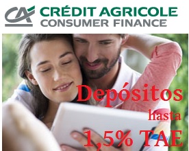 Crédit Agricole Consumer Finance, una entidad de crédito francesa filial del grupo bancario francés Crédit Agricole, ofrece aquí en España depósitos de hasta 1,8% TAE y bajo el FGD Francés.