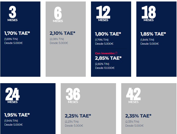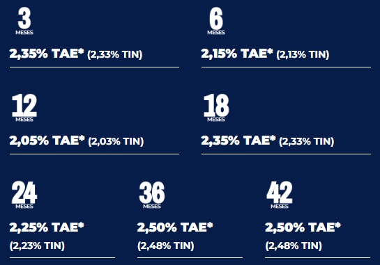 El resto de los productos quedan sin cambios, ofreciendo un máximo de 2,35% TAE tanto para nuevos clientes como a ya clientes.