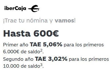Ibercaja también ofrece dinero efectivo a los nuevos clientes que domicilien una nómina de al menos 1.500€ en la entidad en la Cuenta Vamos.