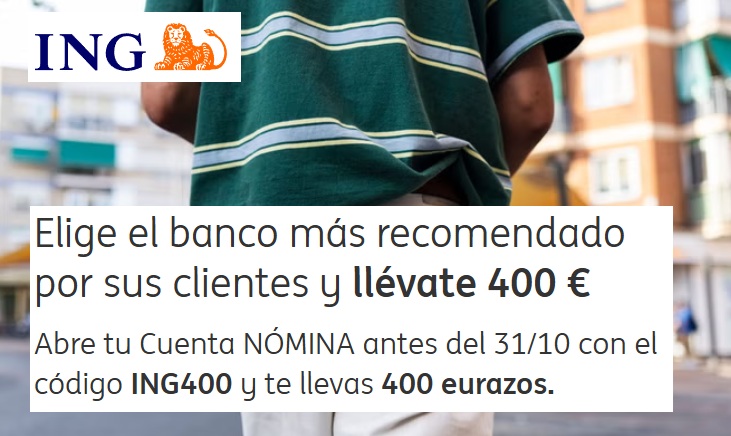 ING lanza una campaña de captación de clientes de su Cuenta Nómina y usuarios de Bizum, ofreciendo 400 «eurazos» a cambio.