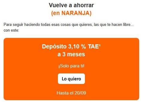 ING está ofreciendo a determinados clientes un depósito al 3,1% TAE y a 3 meses de plazo de determinados clientes.