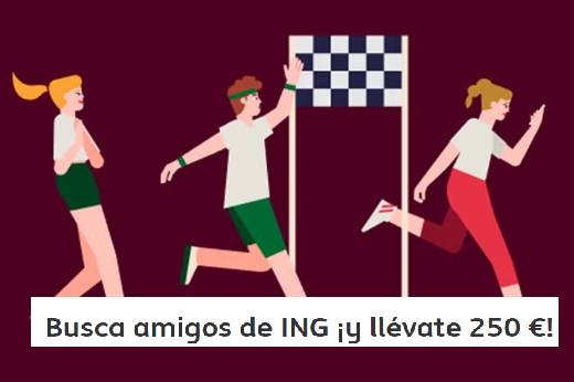 Últimos días de la vigencia del Plan Amigo de ING en el que regala 250€ a los nuevos clientes que domicilien sus ingresos en la entidad por recomendación de un amigo y cliente del banco, que también recibe un premio, en este caso de 50€.