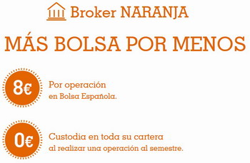 ING Direct rebaja las comisiones de su Broker Naranja de tal forma que para operaciones de entre 19.000 y 30.000 euros es el segundo broker más barato del mercado con un coste fijo de 8 euros (Para cuantías diferentes a las anteriores, el broker no es tan bueno).
