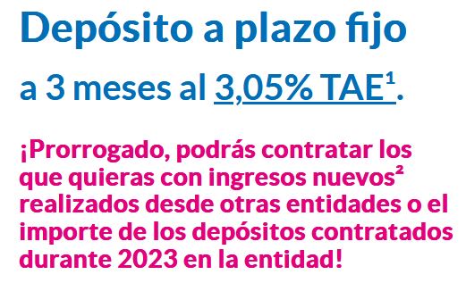 Se tratan de 3 plazos fijos de 3, 6 y 12 meses y con una rentabilidad desde el 1,7% TAE hasta el 1,8% TAE.
