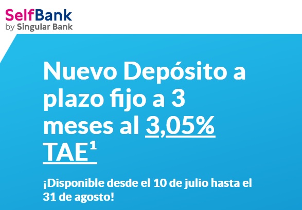 Self Bank ofrece un depósito a 3 meses de plazo y al 3% TAE para dinero nuevo, convirtiéndose en el depósito más rentable del mercado a ese plazo, junto con el de Cuenta Facto.
