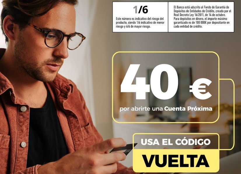 La Cuenta Próxima ofrece una rentabilidad del 0,7% TAE en la cuenta, el segundo más rentable del mercado después de Renault Bank al 1% TAE.
