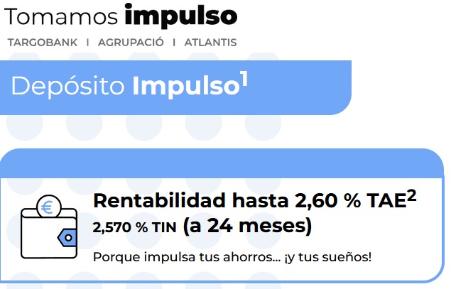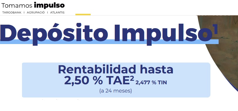 TargoBank entra fuerte en el mercado de depósitos con el lanzamiento de 3 depósitos a 1, 2 y 3 años de plazo, con rentabilidades muy buenas, desde 2,3% TAE, hasta 2,5% TAE.